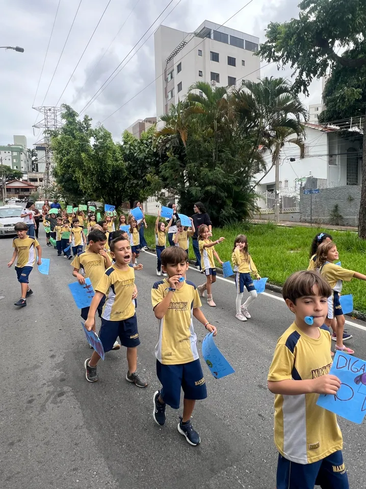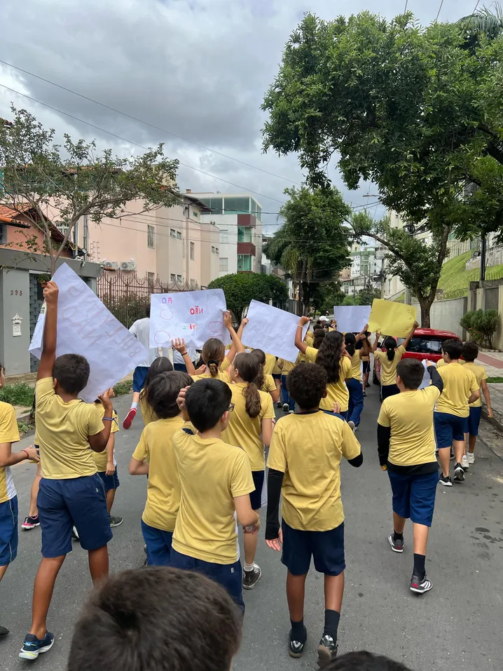 A passeata foi um sucesso! Os alunos participaram com entusiasmo e foram recebidos com muito carinho pelos moradores do bairro. Ao retornarem à escola, refletiram sobre os aprendizados e debateram atitudes que podem ser adotadas para que continuem sendo agentes da paz.