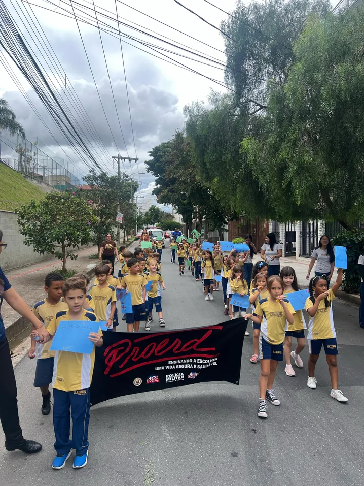 Passeata, com o apoio da PMMG e da equipe do PROERD, encerrou o projeto contra o bullying